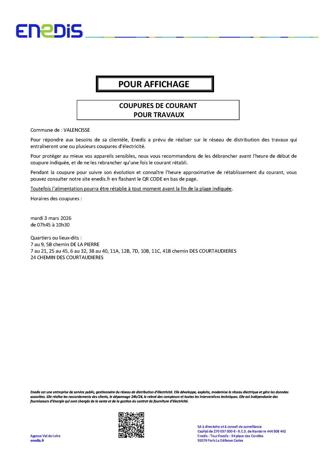 COUPURES DE COURANT POUR TRAVAUX