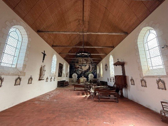 Après la réfection des façades et du clocher, la commune souhaite remplacer les quatre ouvertures restées blanches depuis le début du XXe siècle par des vitraux créés par le Père Kim En Joong, moine dominicain et artiste reconnu dans le monde entier. Ces oeuvres viendront compléter l’ensemble architectural et spirituel du lieu, en écho à la fresque monumentale de Denis de Solère.