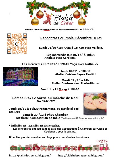 PLANNING DÉCEMBRE PLAISIR DE CRÉER