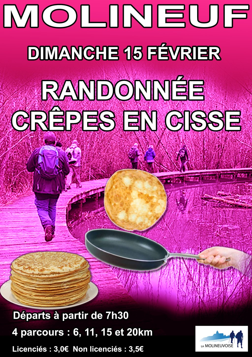 Départ : Mairie de Molineuf : 20km : de 7h30 à 9h0 – 15km : de 7h30 à 9h30 – 11km : 7h30 à 10h0 – 6km : 7h30 à 10h30