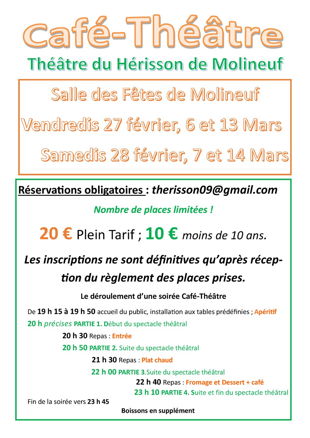 - Apéritif 20 h précises PARTIE 1. Début du spectacle théâtral