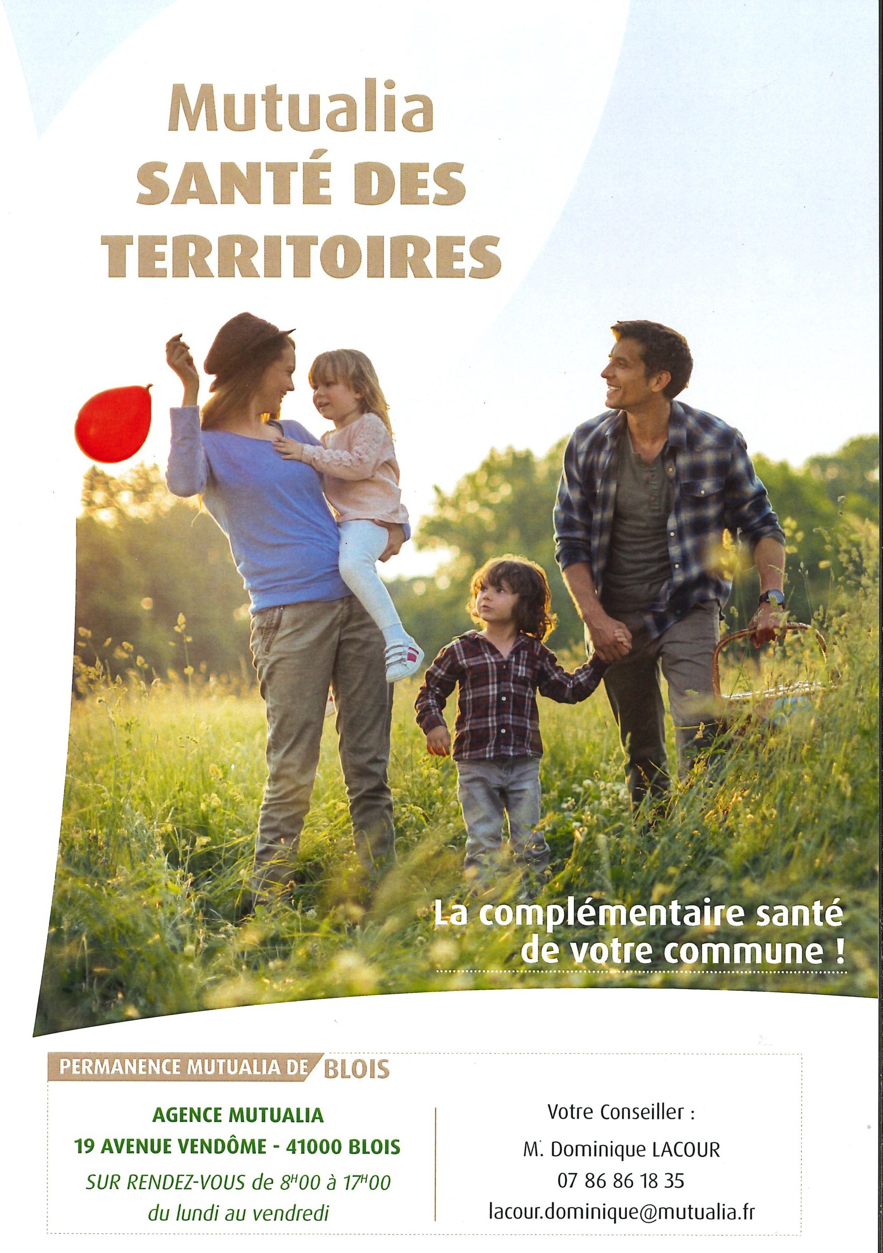 - Les permanences MUTUALIA (Lundi 9 février 2026 de 14 h 00 à 16 h 30 à Orchaise, le vendredi 13 février 2026 de 14 h 00 à 16 h 30 à Molineuf et le vendredi 13 février 2026 de 9 h 30 12 h 00 à Chambon-sur-Cisse)